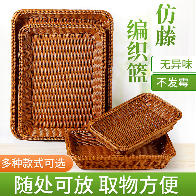 長方形模造籐フルーツバスケットプラスチック織パンバスケットスーパーマーケットディスプレイバスケット家庭用スナック収納バスケット