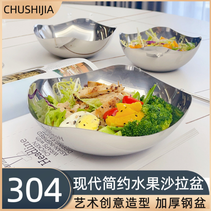 304ステンレスホテル家庭用サラダボウル果物ボウル北欧の軽い贅沢な果物皿トレイにキッチンレストランを置く
