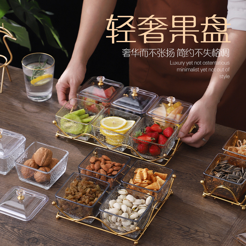 暖炉で茶を飲むのに最適なガラス製仕切り付きフルーツプレート、リビングルーム用スナックプレート、家庭用スナック、キャンディー、ドライフルーツ、軽食、フルーツと野菜の盛り合わせ