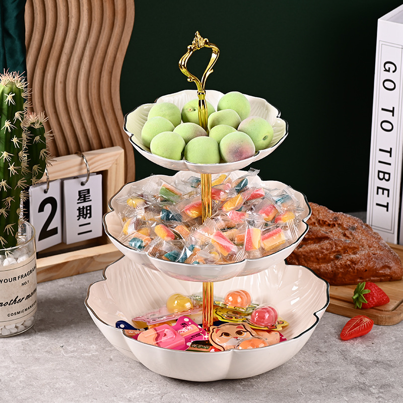 多層フルーツプレート家庭用リビングルームのお茶の二層のドライフルーツのお菓子のお菓子を並べて、お茶の三層のキャンディープレートを置きます。