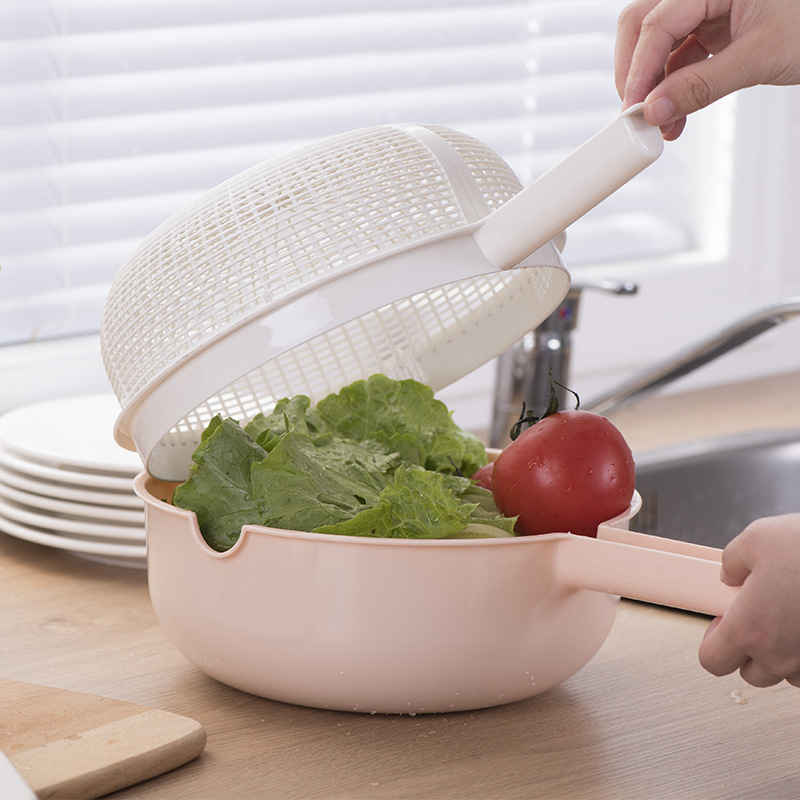 二重のプラスチックの水たまりのかごは取っ手の池の野菜のかごの果物のかごの台所を持って蓋を持って野菜のかごの取っ手を洗うかごを洗います。