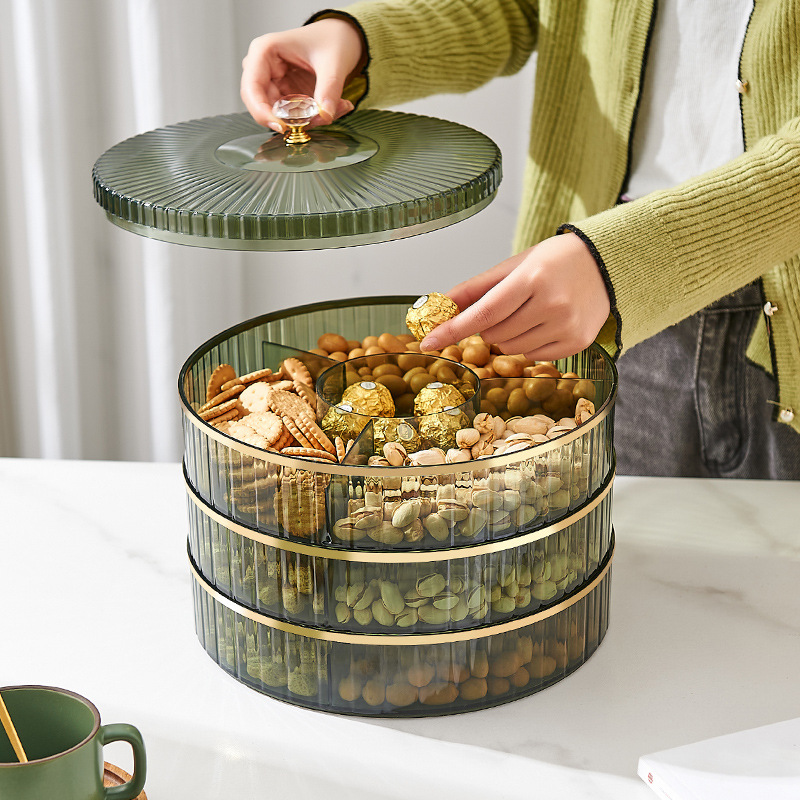 リビングルーム家庭用フルーツプレートハイエンドライトラグジュアリースタイルスナックドライフルーツキャンディボックス回転透明多層シンプルでファッショナブル