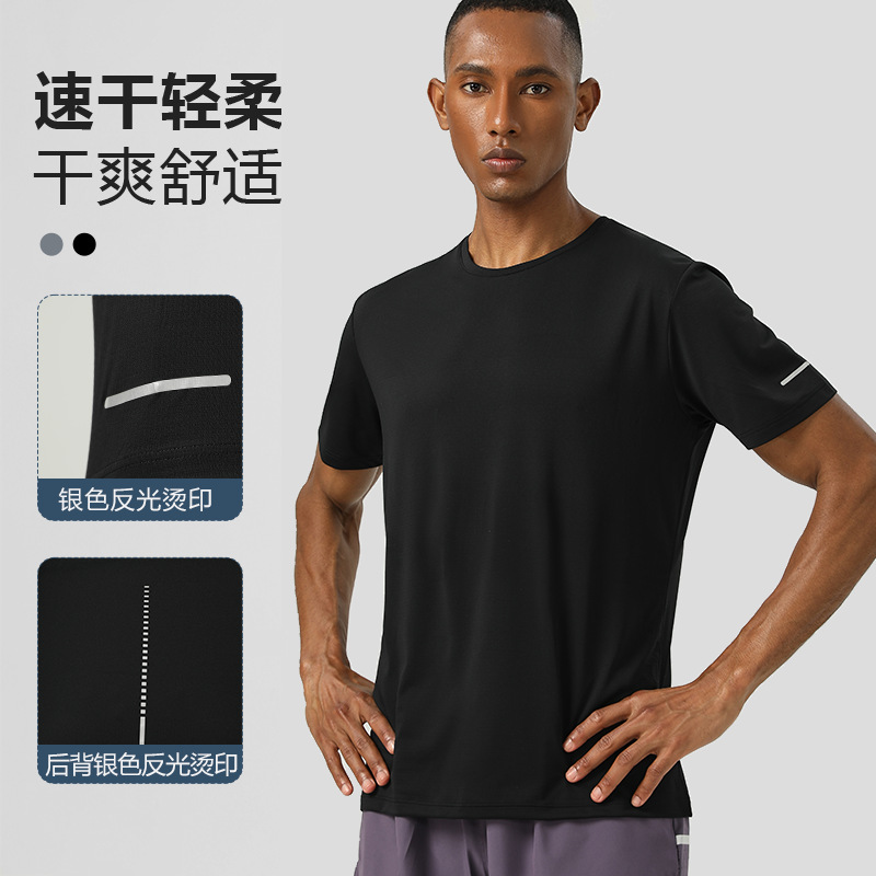 アウトドアスポーツ速乾性Tシャツ、ラウンドネック、クラウドヤーン抗菌吸湿トップス、メンズフィットネストレーニング反射半袖ウェア