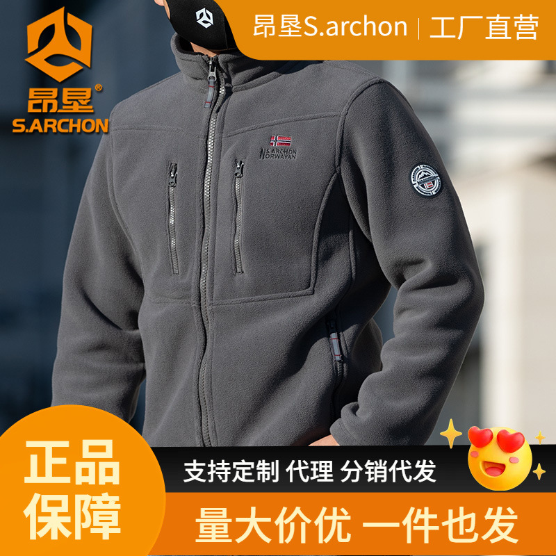春と秋にベルベットの女性の屋外保温通気性カーディガンのスタンドカラーが痩せているフリースのコート男性登山クロスボーダー専用