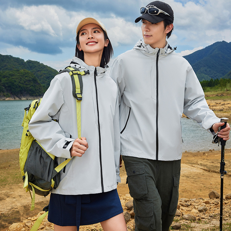 風雪狼春秋アウトドア中高年カップル用シングルレイヤーウインドブレーカー女性用防水通気性大きいサイズ薄型男性用登山服