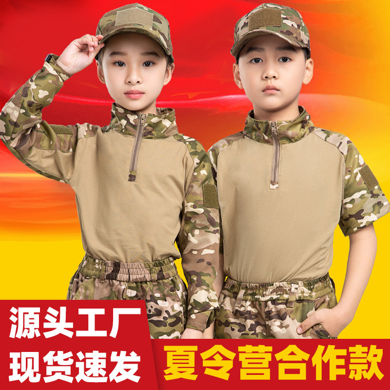 子供の迷彩服半袖男性の夏のキャンプ服の野外開拓訓練のカエル服の学生の演技の演出服
