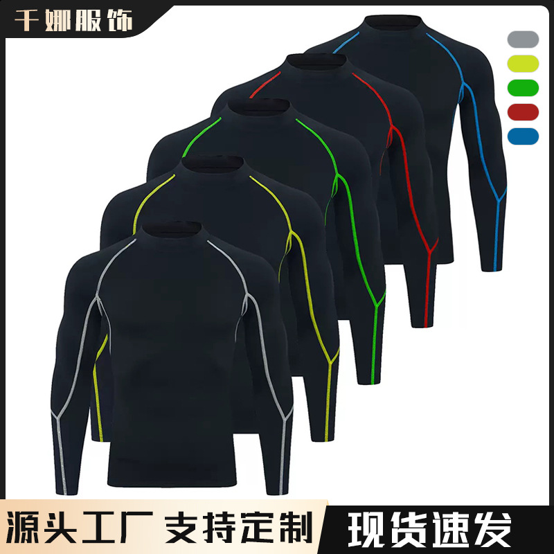 越境フィットネス服男性長袖弾力圧縮速乾ランニング服バスケットボールトレーニング装備アウトドアスポーツ上着