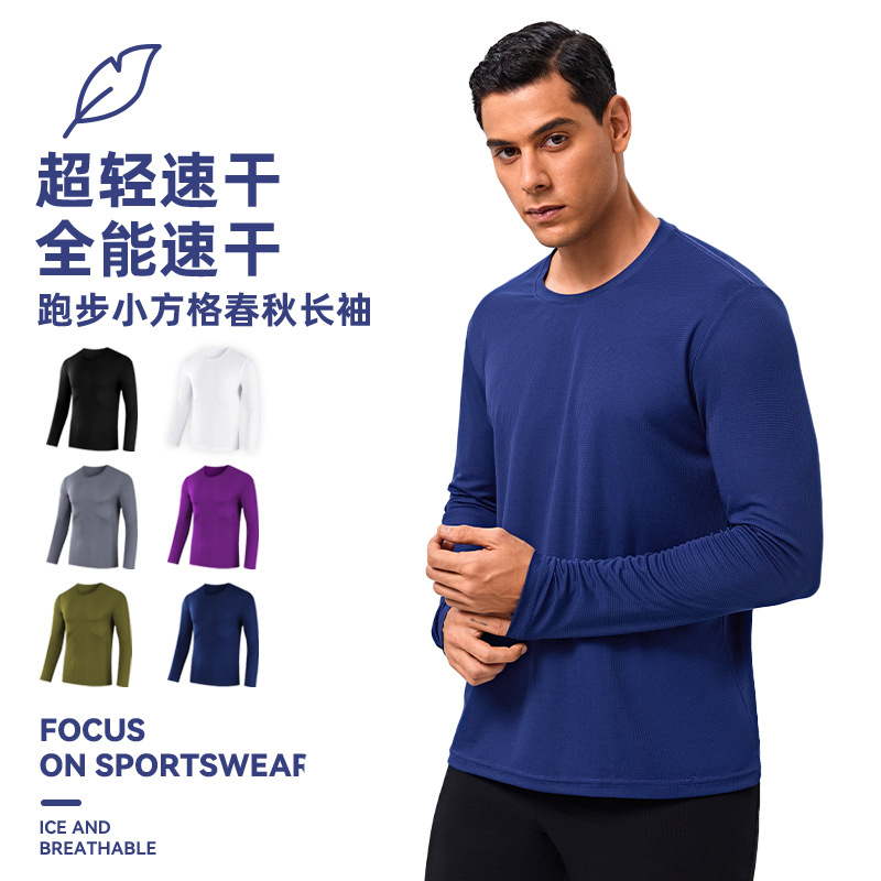 Bmai 同スタイル アウトドア ラウンドネック トップス 春夏 速乾 超軽量 小さな正方形 スポーツ 長袖 Tシャツ 速乾 ランニングウェア