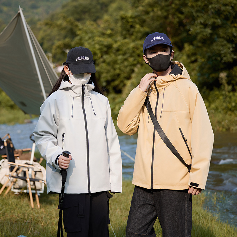 メーカー直販卸売りカップル屋外突撃服単層運動服装男女薄手防風防水共同購入