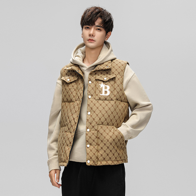 冬の潮牌爆金b字満印格子立襟カン肩コート男性袖なし工装厚手保温馬甲