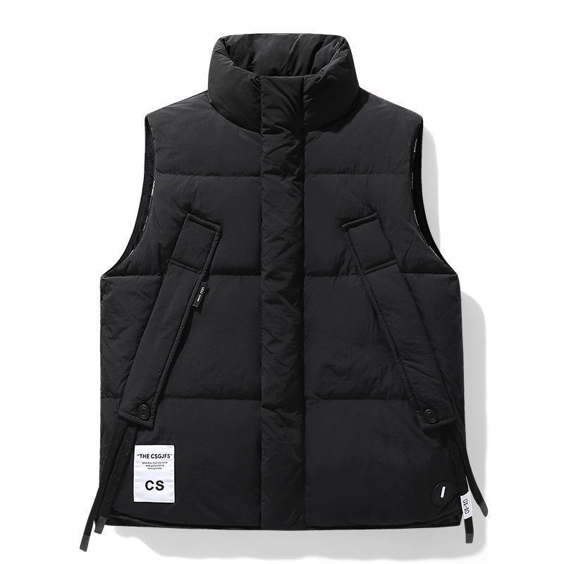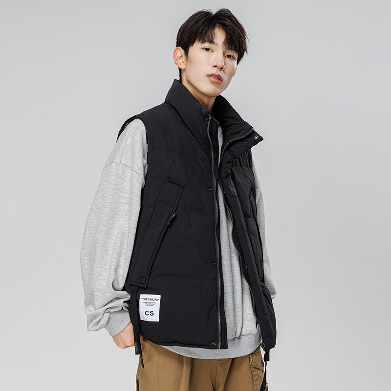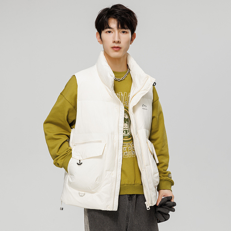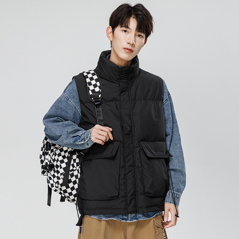 冬のレジャースポーツ馬甲男潮牌工装立襟純色ダウン馬甲カン肩袖なしコート