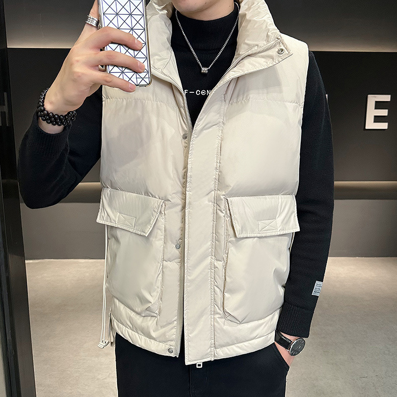 立襟ダウンベスト男性アヒルのベルベットベスト秋冬2023新型保温防寒ベスト男性