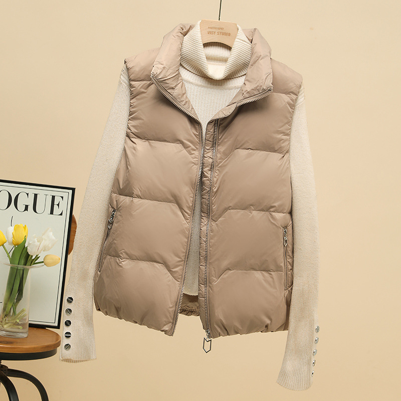 2023年新型秋冬女性ダウンジャケット立襟ショートタイプ軽薄ベストカジュアル韓国版ゆるい気質上着