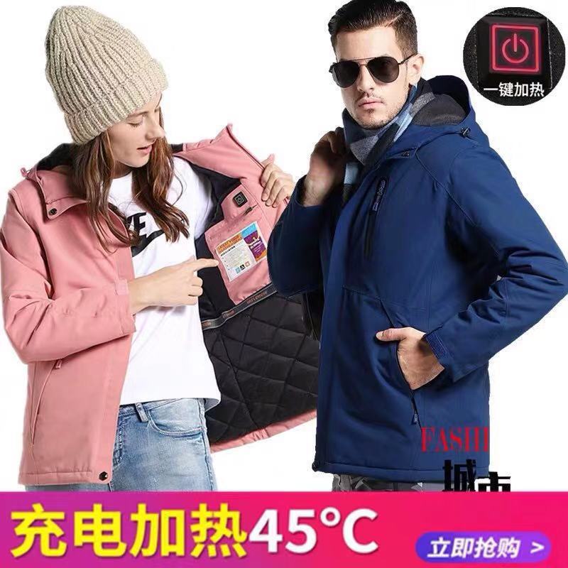 クロスボーダー知能発熱服突撃服新型ファッションカップル綿衣メンズ防水服防風保温登山服