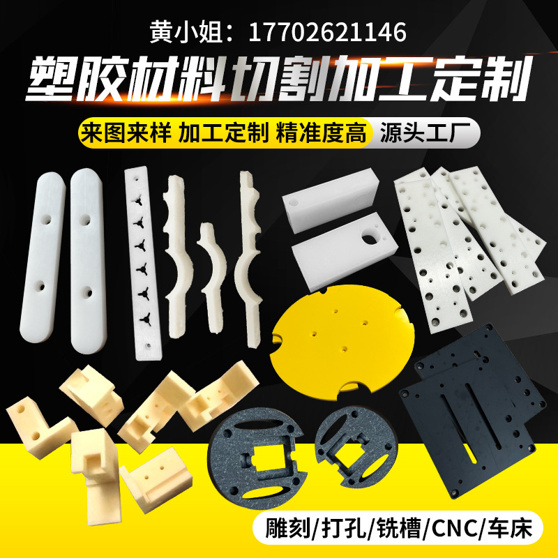 異形ナイロン部品、プラスチック部品、PP加工、ナイロン板彫刻、POMポリオキシメタレン異形部品、プラスチック部品加工