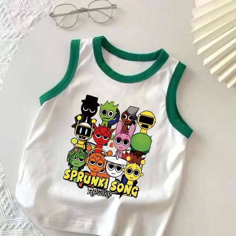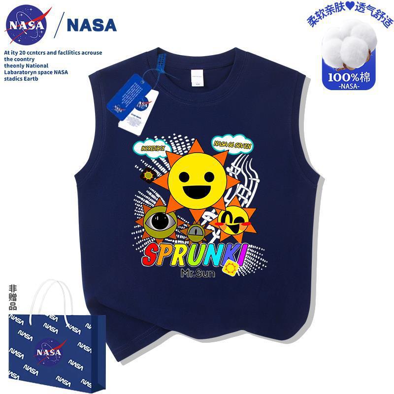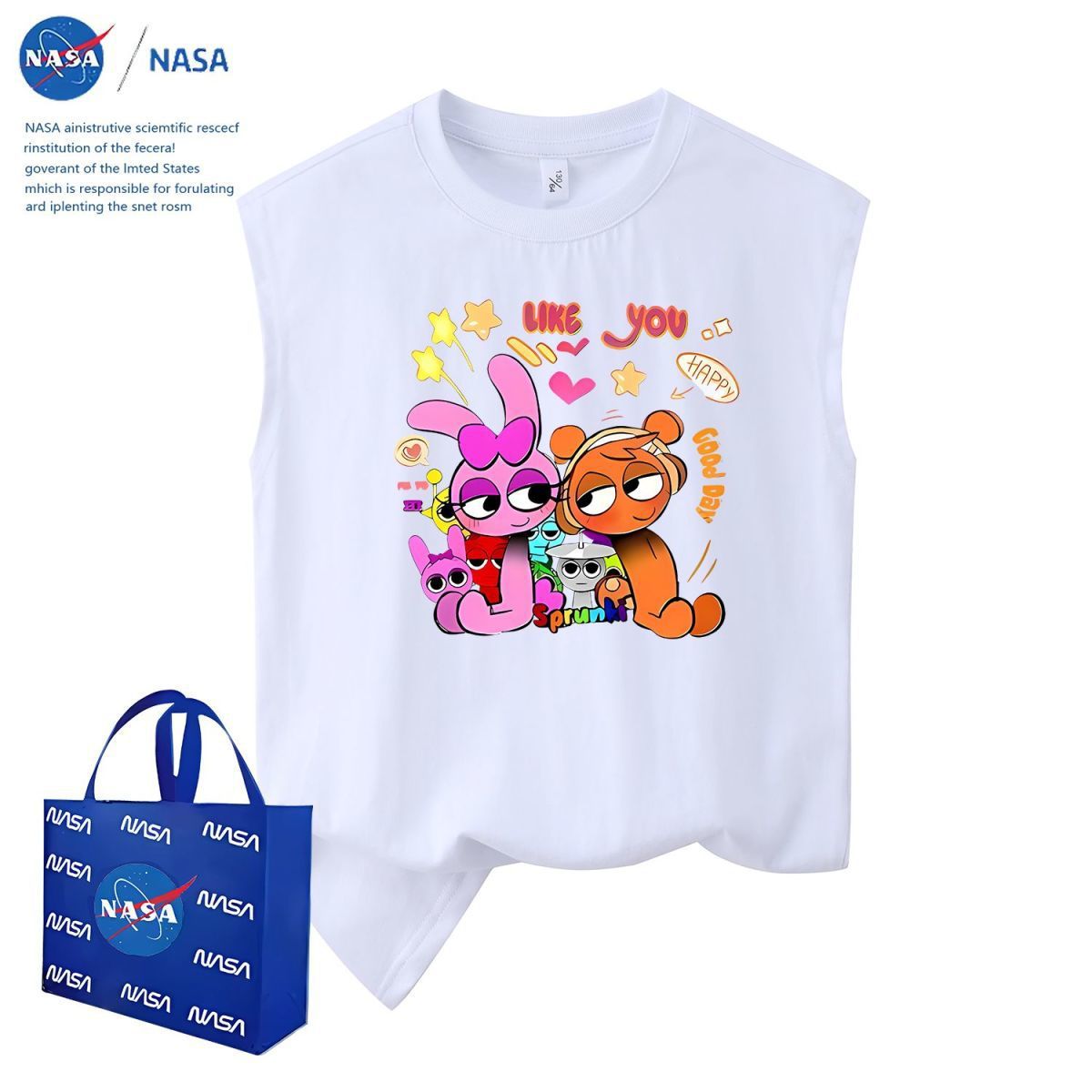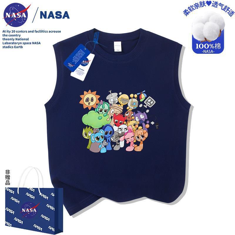 NASA リズムボックス Sprunki 子供漫画ノースリーブベスト Tシャツ中大型子供服純綿ボトムストップ