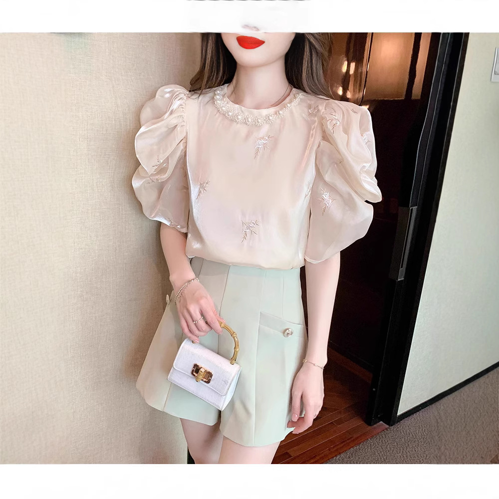 カスタマイズされた夏のフランスのトレンディなブランドの女性の服、5点のパフスリーブ、エレガントなハイエンドのプロフェッショナルライトラグジュアリートップ