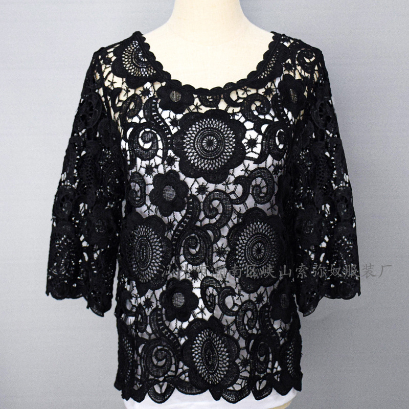 オーダーメイドビーチ屋外休暇日焼け止めシャツ欧米の透かし彫りの花のベストビキニの中の長いレースのブラウス