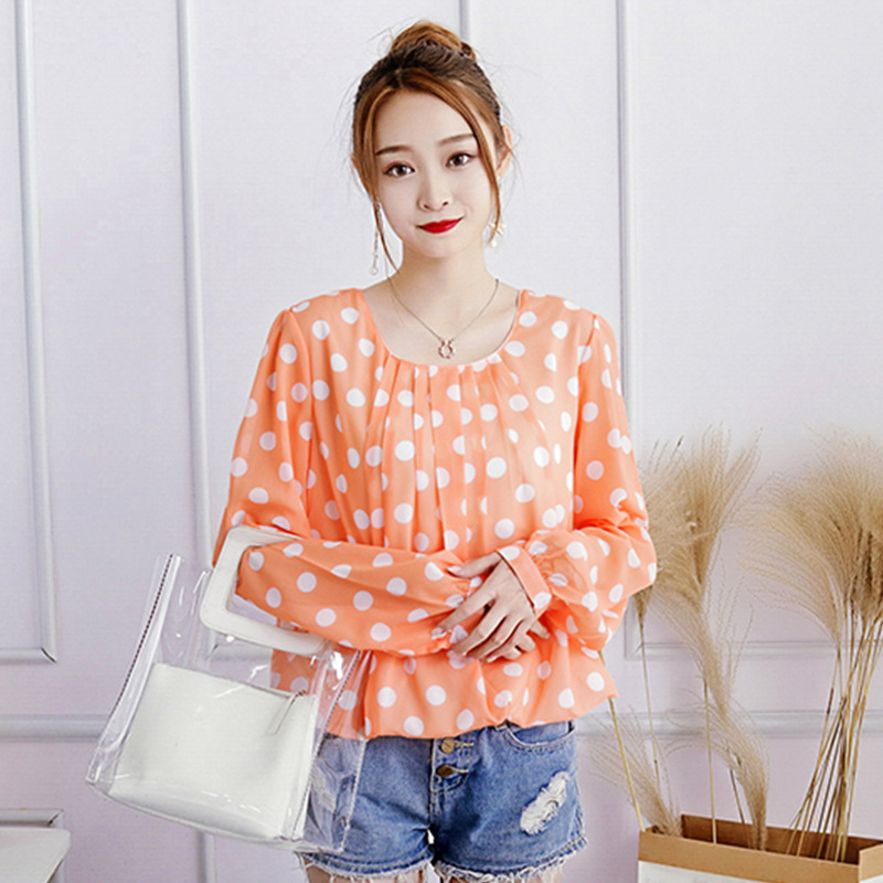 スノーシフォン水玉プルオーバー春夏薄手水玉トップスレディース韓国風透け防止インナーシャツ台湾限定バージョン