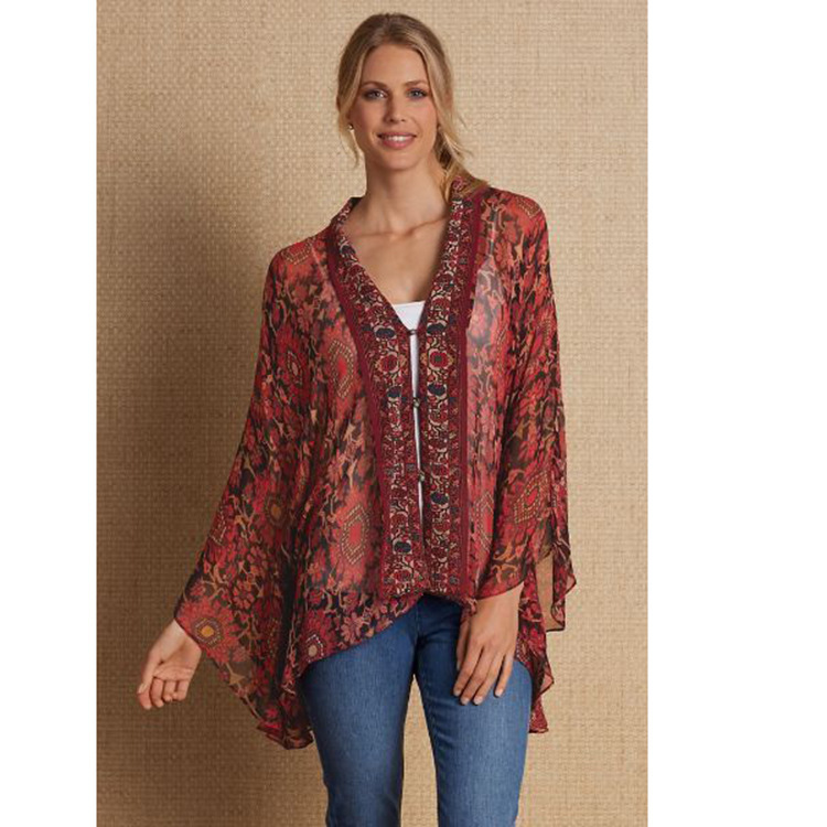 大サイズ欧米wish速売通ebay小砕花プリント上着ファッション雪紡織カーディガン