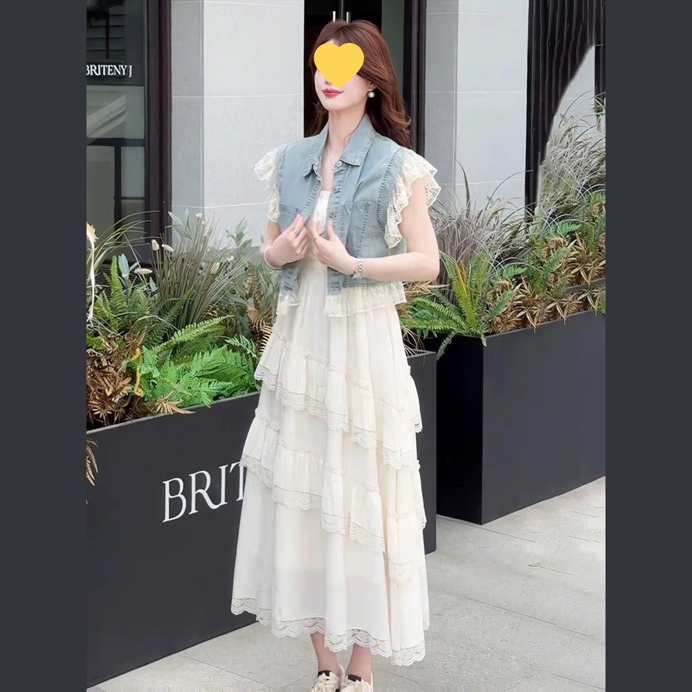 夏の新しいデザインのフレンチハイエンドスリムホワイトサスペンダードレスレディースファッションデニムベストスーツ