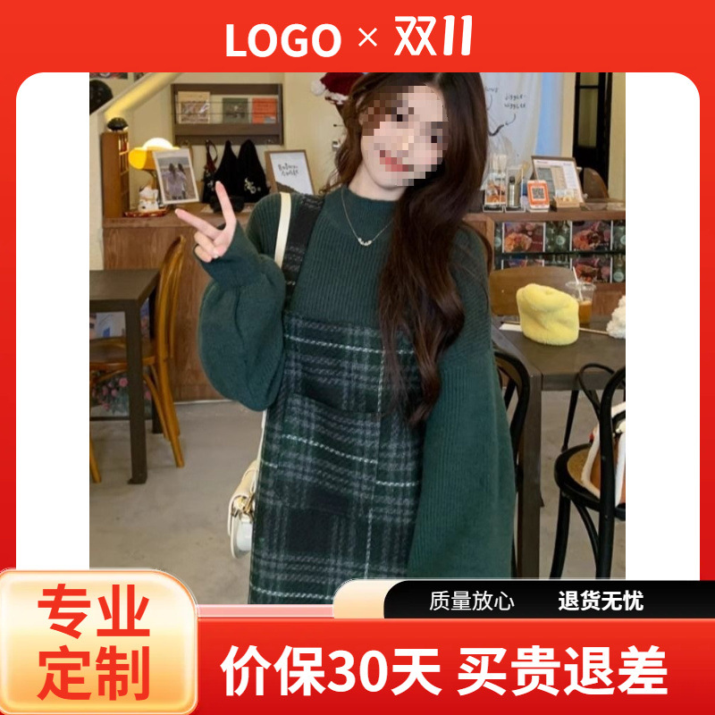 秋のセーターと純粋な欲望スタイルのツーピースセット、韓国風の小さな香りのスーツ、チェック柄のサスペンダースカート 2025