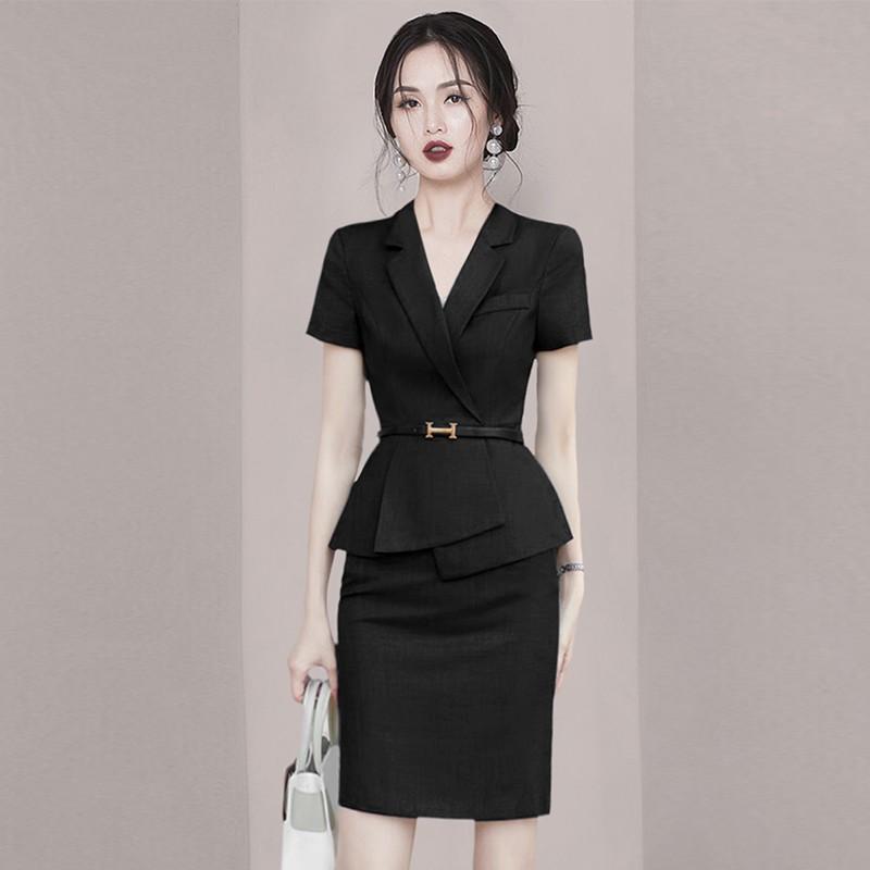女神風プロフェッショナル気質ツーピース夏新作新作半袖スーツヒップカバースカートスーツ