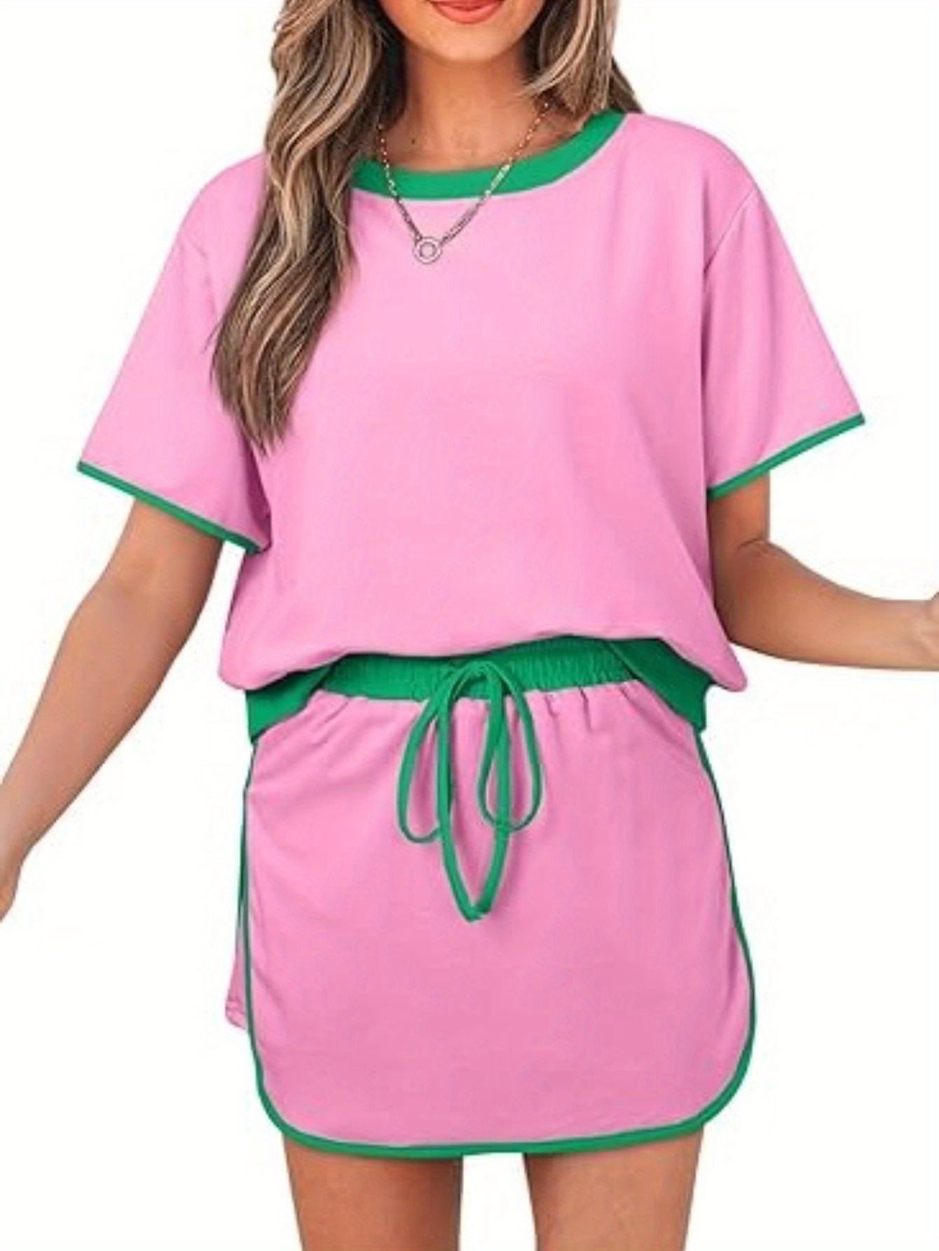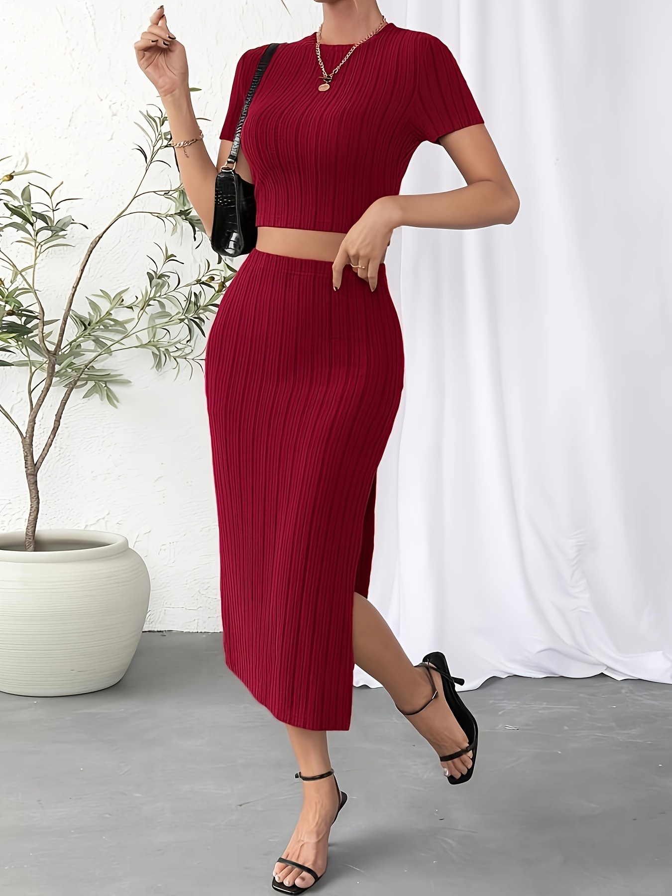 2025年新作クロスボーダードロップシッピングエレガントな無地リブスカートスーツ半袖セーター(クロスボーダー)