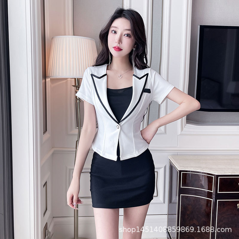 2024春夏新品職業服レディース小香風スーツ白チョッキワンピースジュエリー美容師プルオーバー