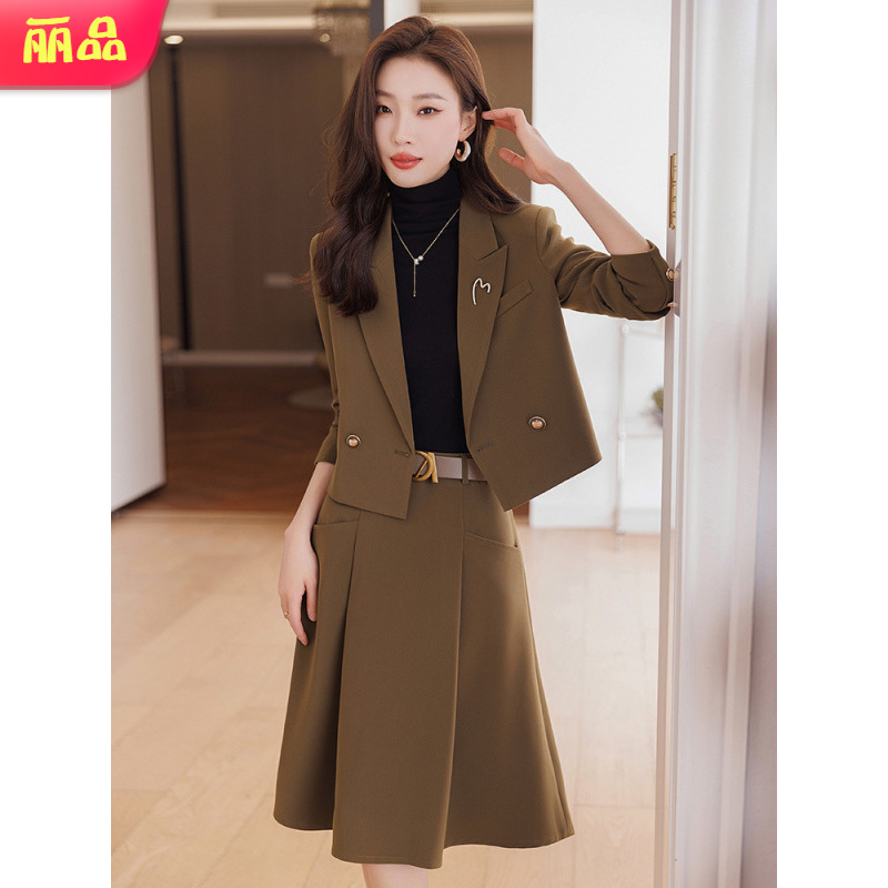 秋冬新作高級感墨緑ショートファッション名媛デザイン感小香風職業女性スカートスーツ正装