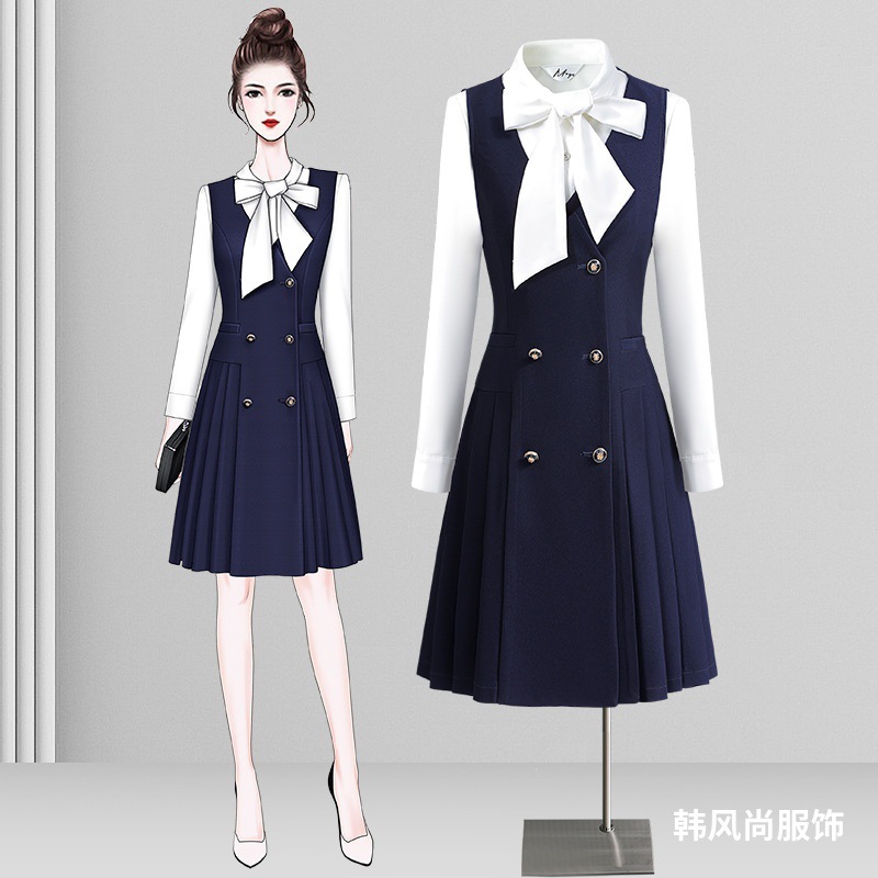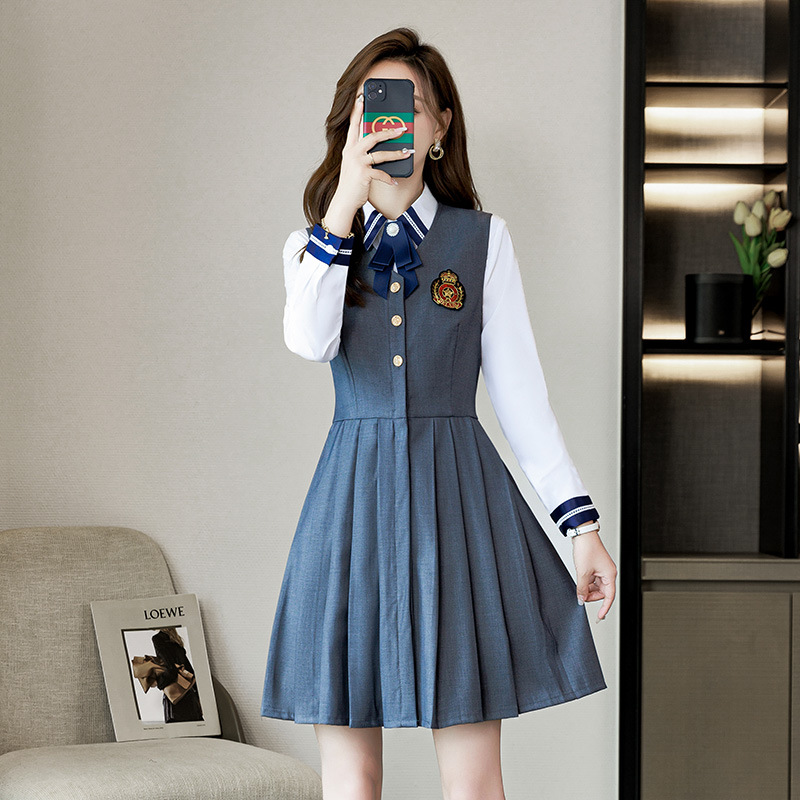 秋冬新作職業婦人服長袖洋服セット学院風ワンピース三点セット幼稚園先生園服
