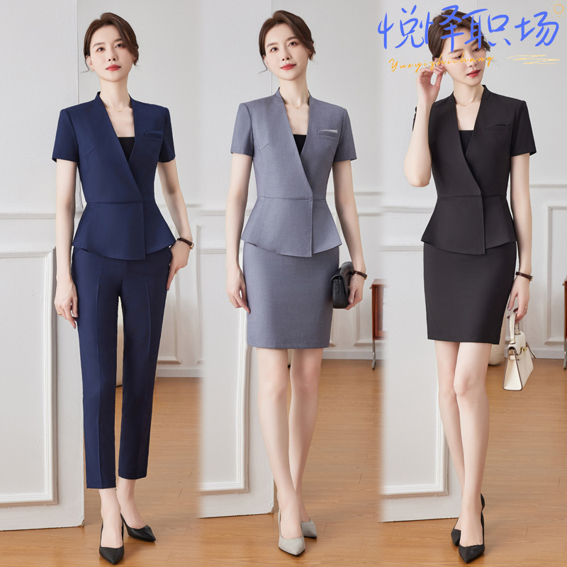 金店作業服セット夏灰色気質職業スーツ宝石店出勤ホテルフロント作業服女性