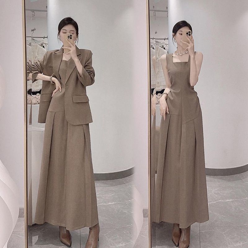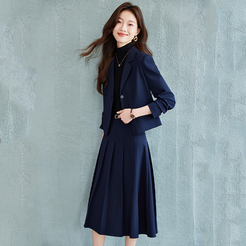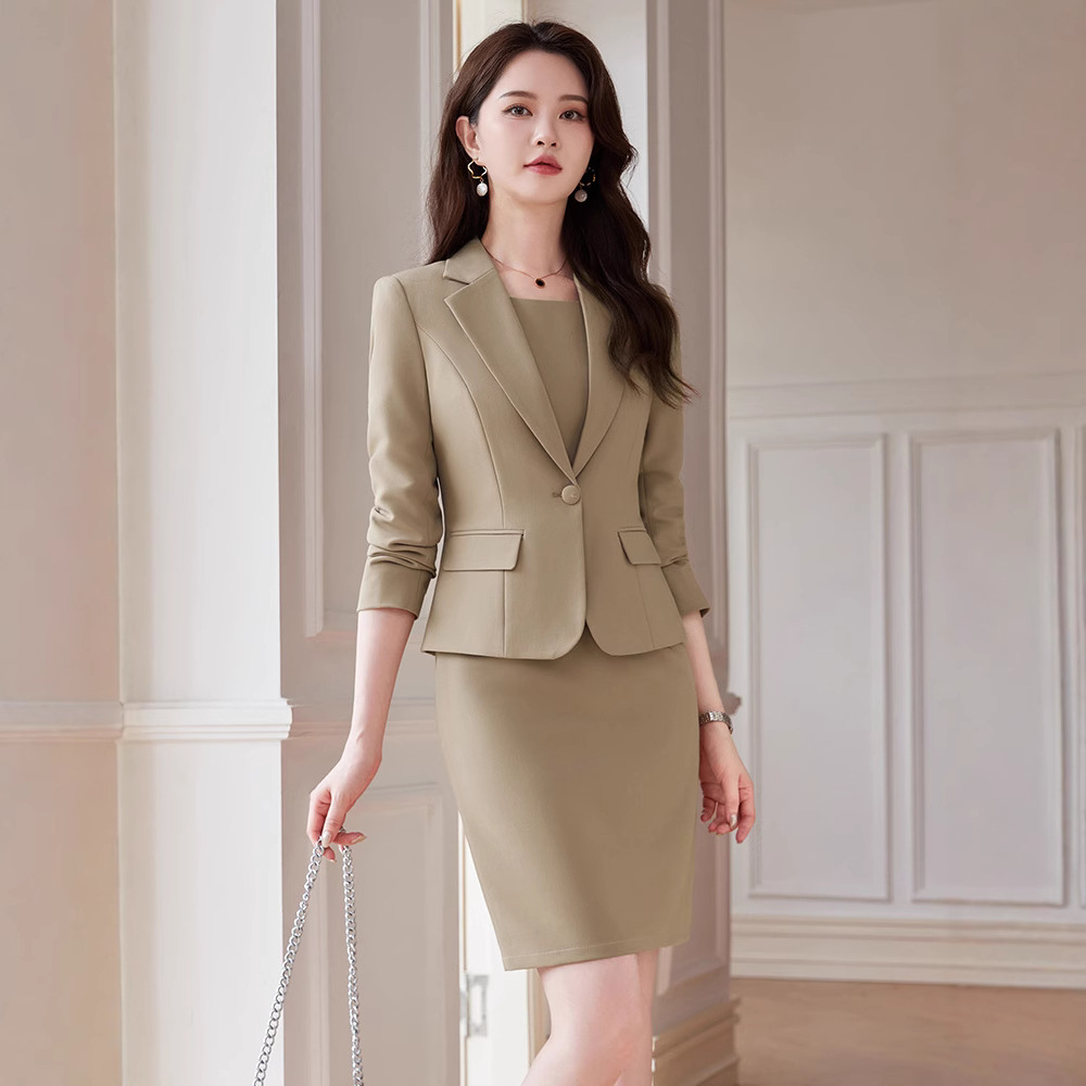 スーツのスーツのスカートの女性の2024春秋の高級感の職業のスーツの気質のスーツのコートはワンピースの2つのセットを配合します。