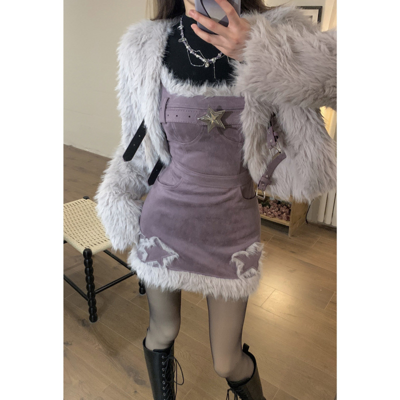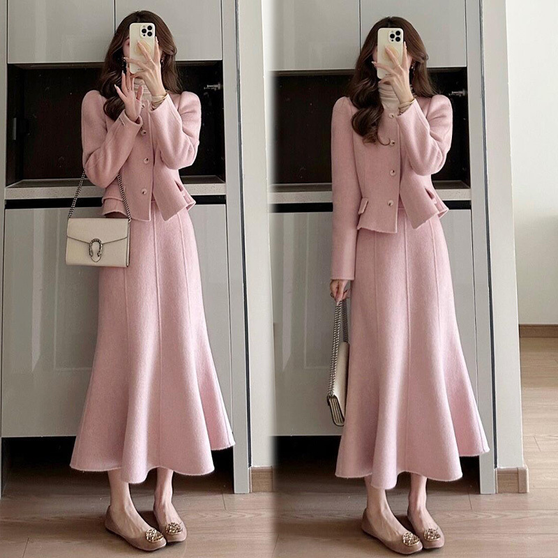 Y9Z小香風毛ワンピースセット女性2024新秋冬ニットスカート小背着二枚