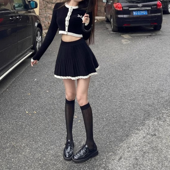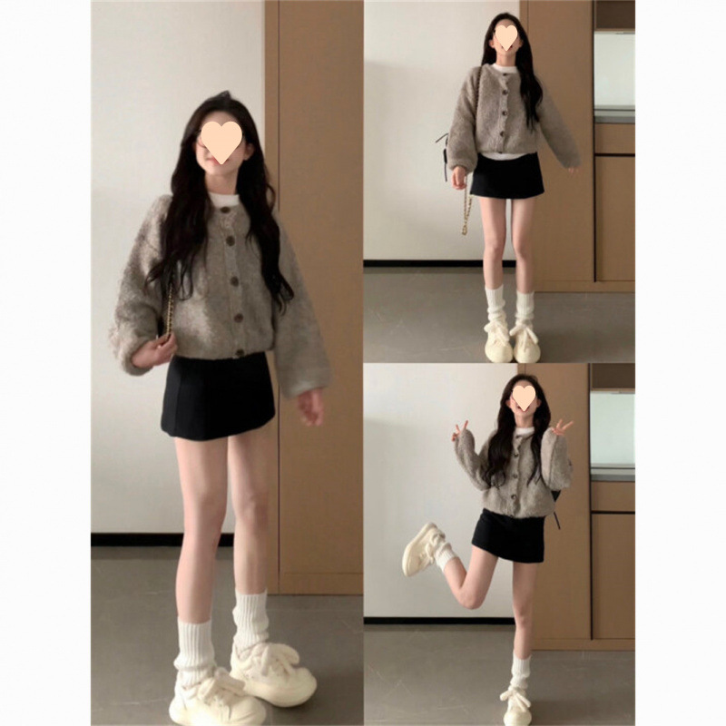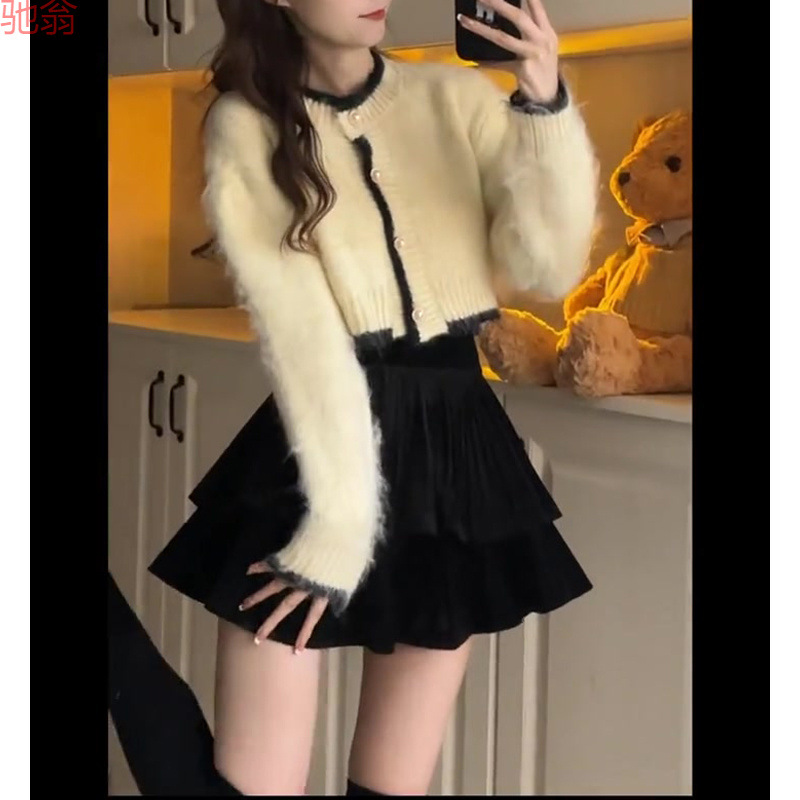 震え音天猫品質小香風スーツ女性娘の短いニットカーディガンコート百タックスカート2セット