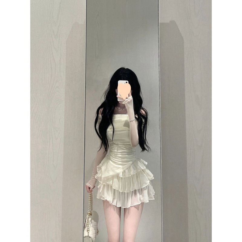純粋な欲望の肩の露のスーツは上着の半身のスカートの女性の1字の夏服のギャルのケーキの純粋な欲望の風の2つのセットを修理します。