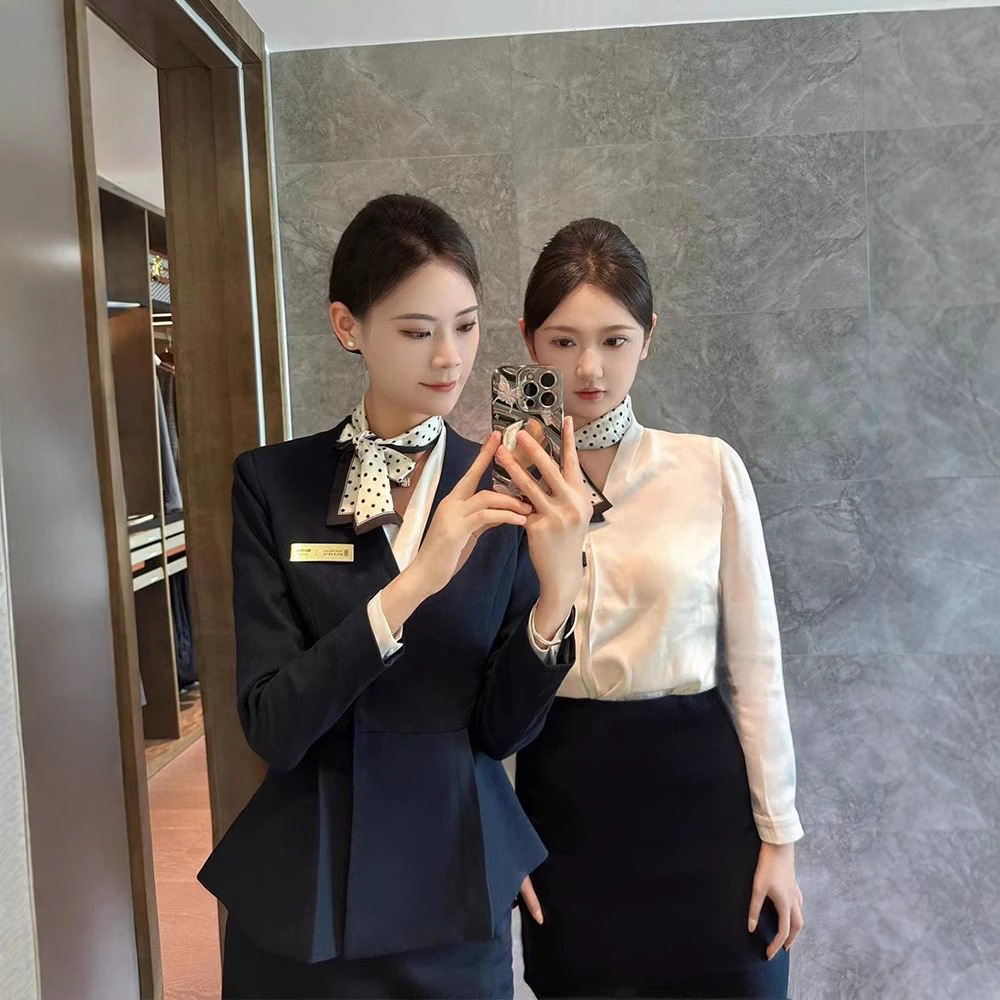 職業スーツの女性春秋高級美容師宝石店ホテルのフロント医美販売部の作業服の女性