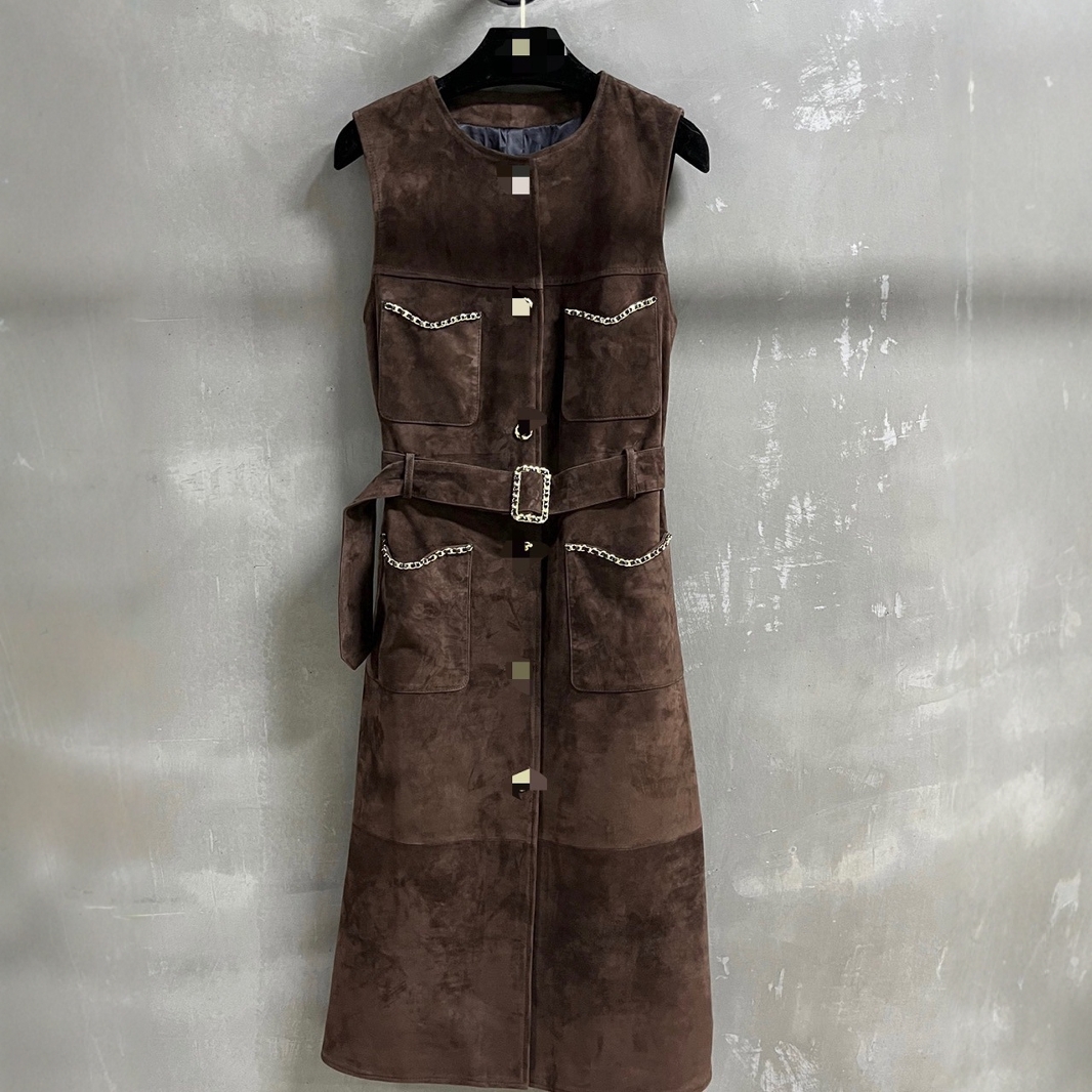 ツバキの花のチェーンの高級感のフランスの輸入の混種のカシミヤの反絨皮のスーツの皮のコートの馬甲のスカートの女性