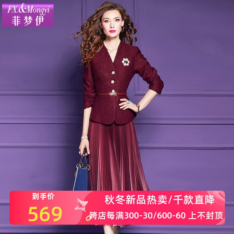 菲夢伊高級感ファッションスーツ女性は冬に腰を厚くして赤い毛を明るくします。