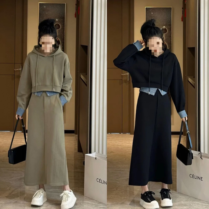 大きいサイズの婦人服の秋の衛衣のスーツの洋気の年齢を減らして太っているmm200斤はやせている半身のスカートのファッションの2つのセットを現します。