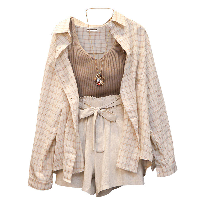 Pure Lust Hot Girl スーツ女性 2025 夏長袖日焼け止めブラウストップスキャミソールスカート 3 点セット