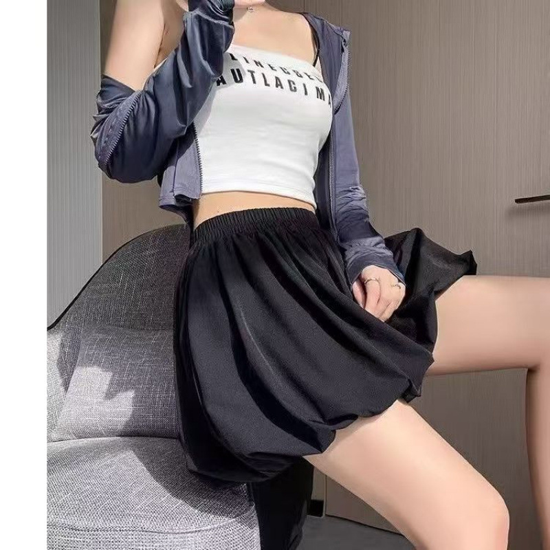 2025年新作夏ふわふわ花のつぼみスカート小柄な夏のランタンスカートハイウエスト痩身ショートスカート