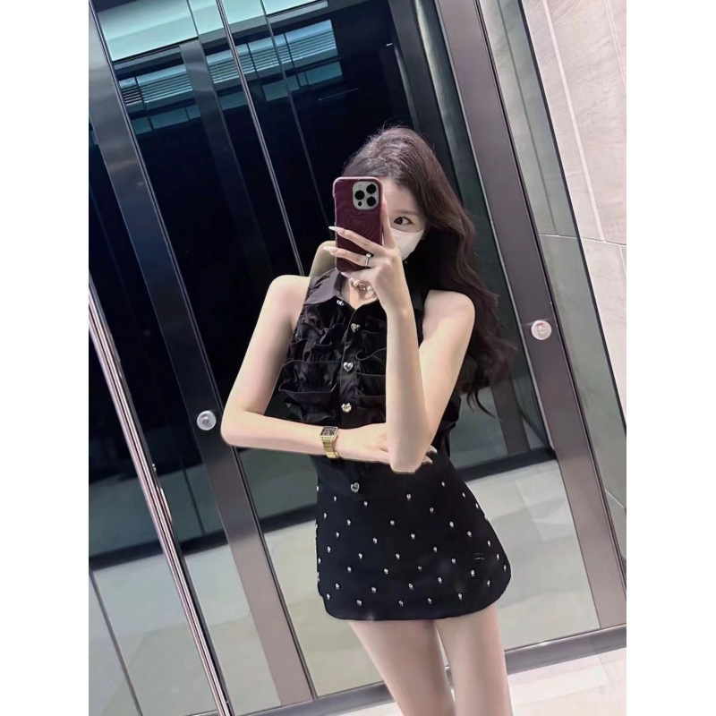 大学先輩の夏カレッジスタイルオリジナルニッチデザインノースリーブピュアデザイストップセクシーハイウエストスリムスカート