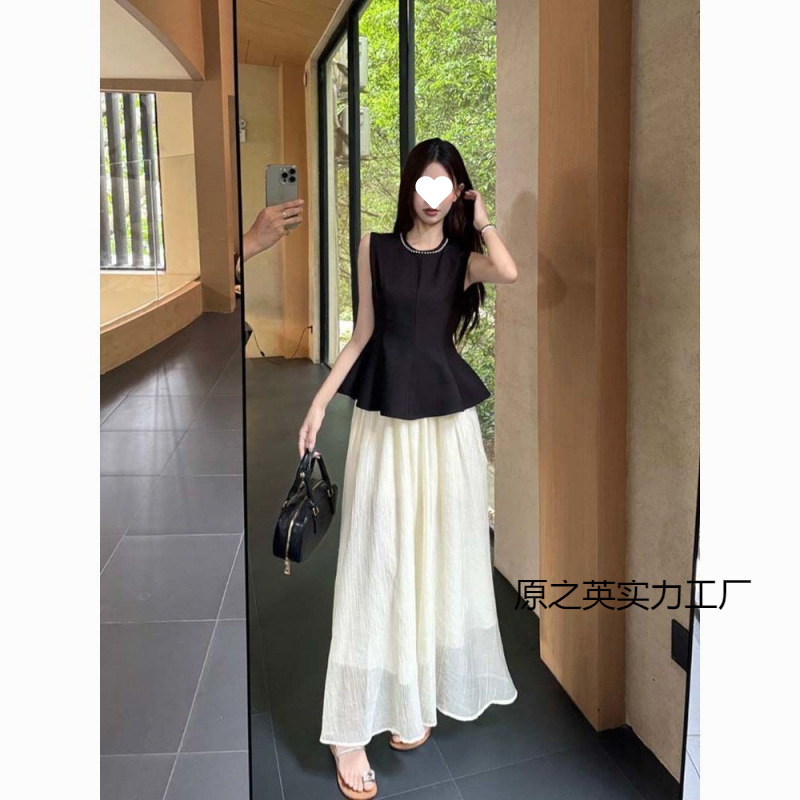 女性用サマーシックスーツ、フレンチハイエンド年齢軽減ノースリーブベストトップ、ホットガールスタイルスリットスカート2点セット