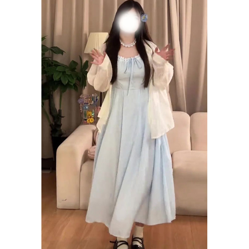 ファットmmの優しいスタイルのドレス、女性用の大きいサイズのスーツ、夏のアウターウェア、薄い日焼け止めシャツ、気質カバーアップサスペンダースカート