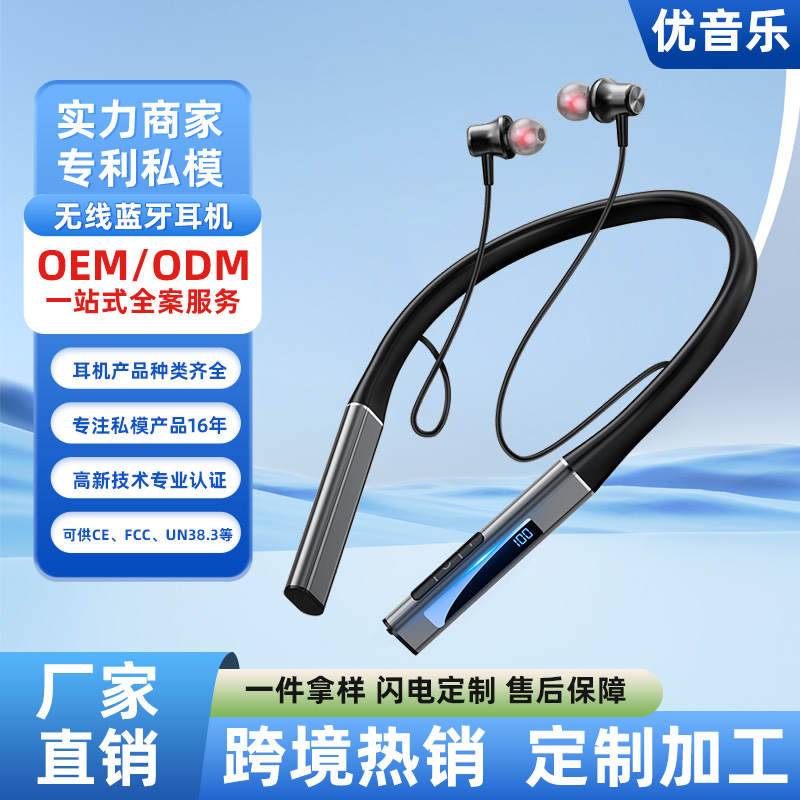 首付ワイヤレスbluetoothイヤホンデジタル表示機能付き大容量半入耳運動ステレオ首付イヤホン