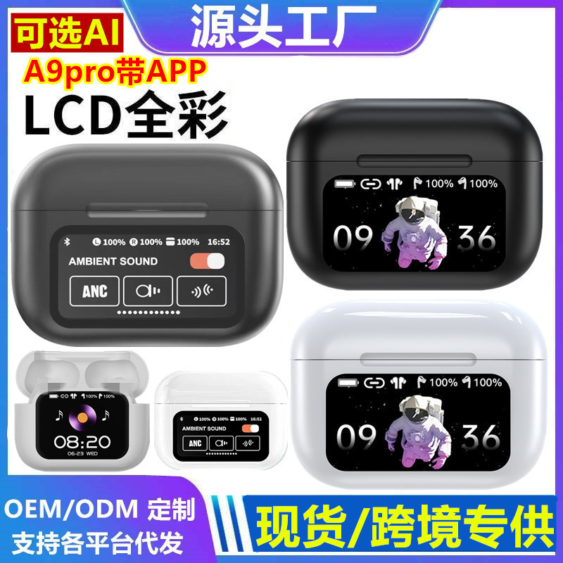 2025 クロスボーダー新しい Bluetooth ヘッドセット a9Pro ワイヤレス Ai 翻訳 ANC ノイズリダクション携帯電話に適したユニバーサルカラースクリーンヘッドセット
