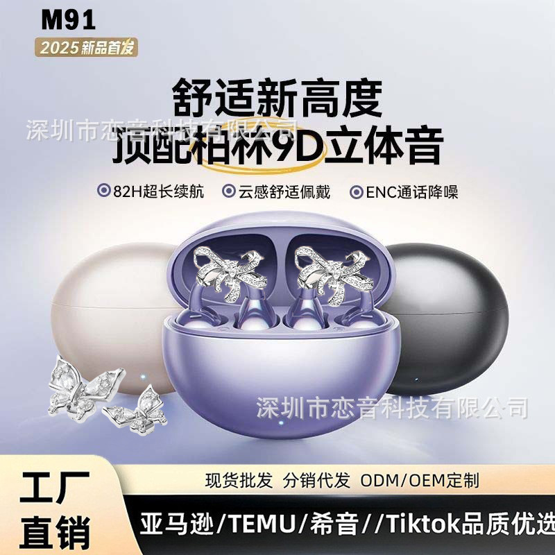 リボンダイヤモンドバックル 2025 新型 M91 翻訳イヤホン クロスボーダー人気ワイヤレス OWS イヤークリップ型 Bluetooth イヤホン