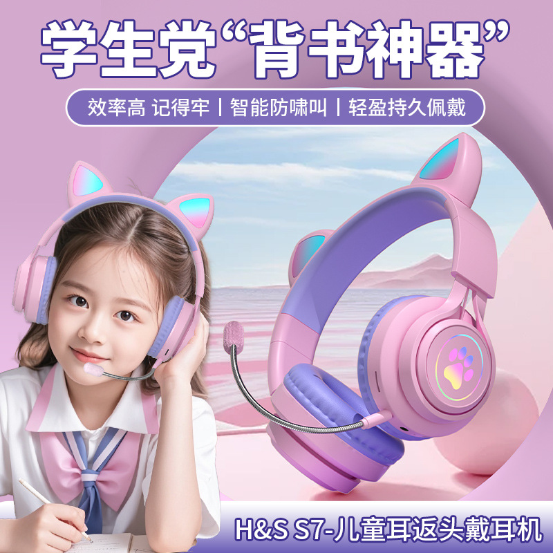 新しい猫耳発光ヘッドマウント Bluetooth ヘッドセット S7 音楽学習読書ユニバーサルイヤーリターンワイヤレスヘッドセット