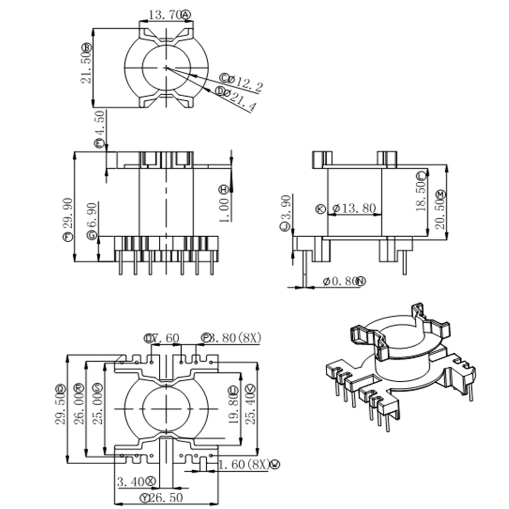 0802014骨格立式5-5磁気コア骨格磁気コア変圧器骨格